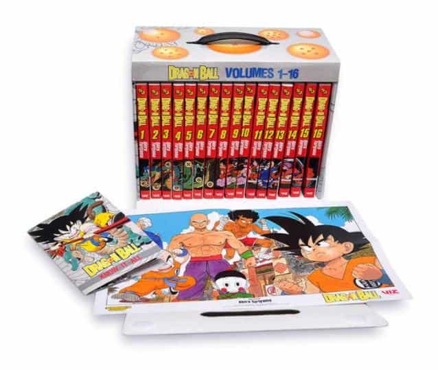 The Dragon Ball Complete Box Set contains all 16 volumes of the original manga that kicked off the global phenomenon. Also includes an exclusive double-sided poster and collector’s booklet featuring fun Dragon Ball trivia and guides as well as an interview with its legendary creator.