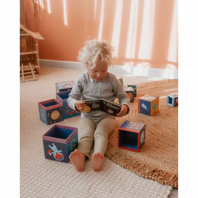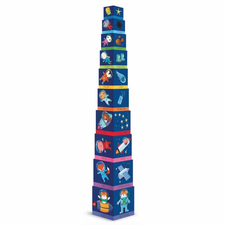 This colourful and appealing book teaches young readers key concepts about colours, stars and planets. The 10 illustrated cubes can be used to build a tower for fun, interactive learning that fosters cognitive development and builds motor skills.