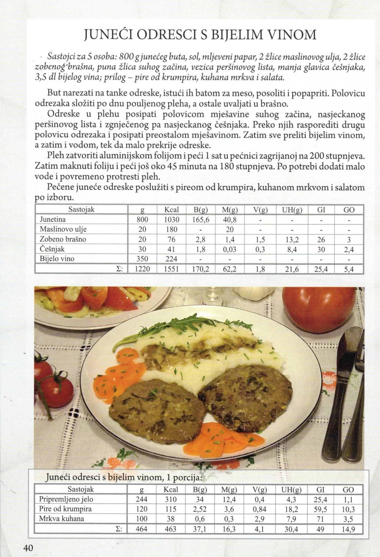Više od 60 recepata namijenjenih dijabetičarima, svaki recept ima i tablicu kalorijskih vrijednosti i glikemijskim indeksom.